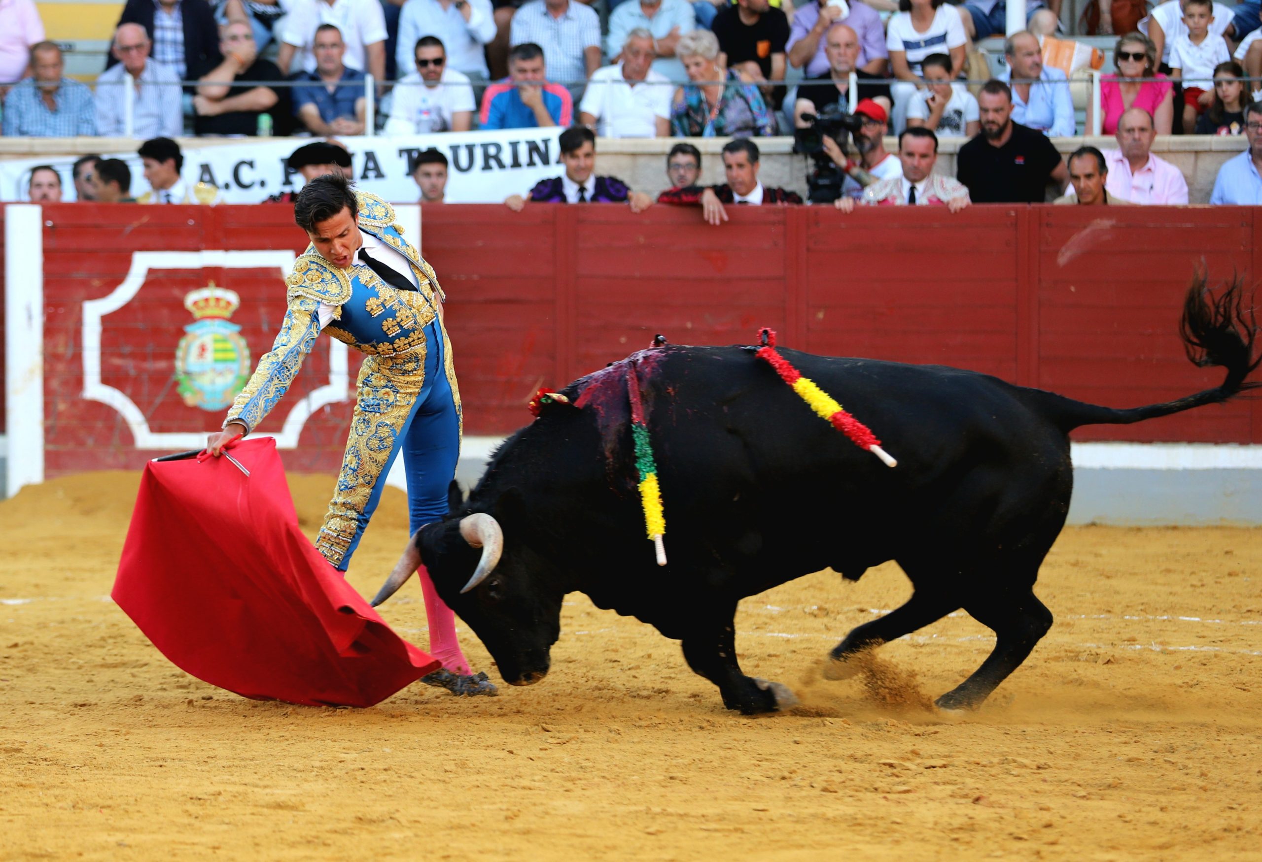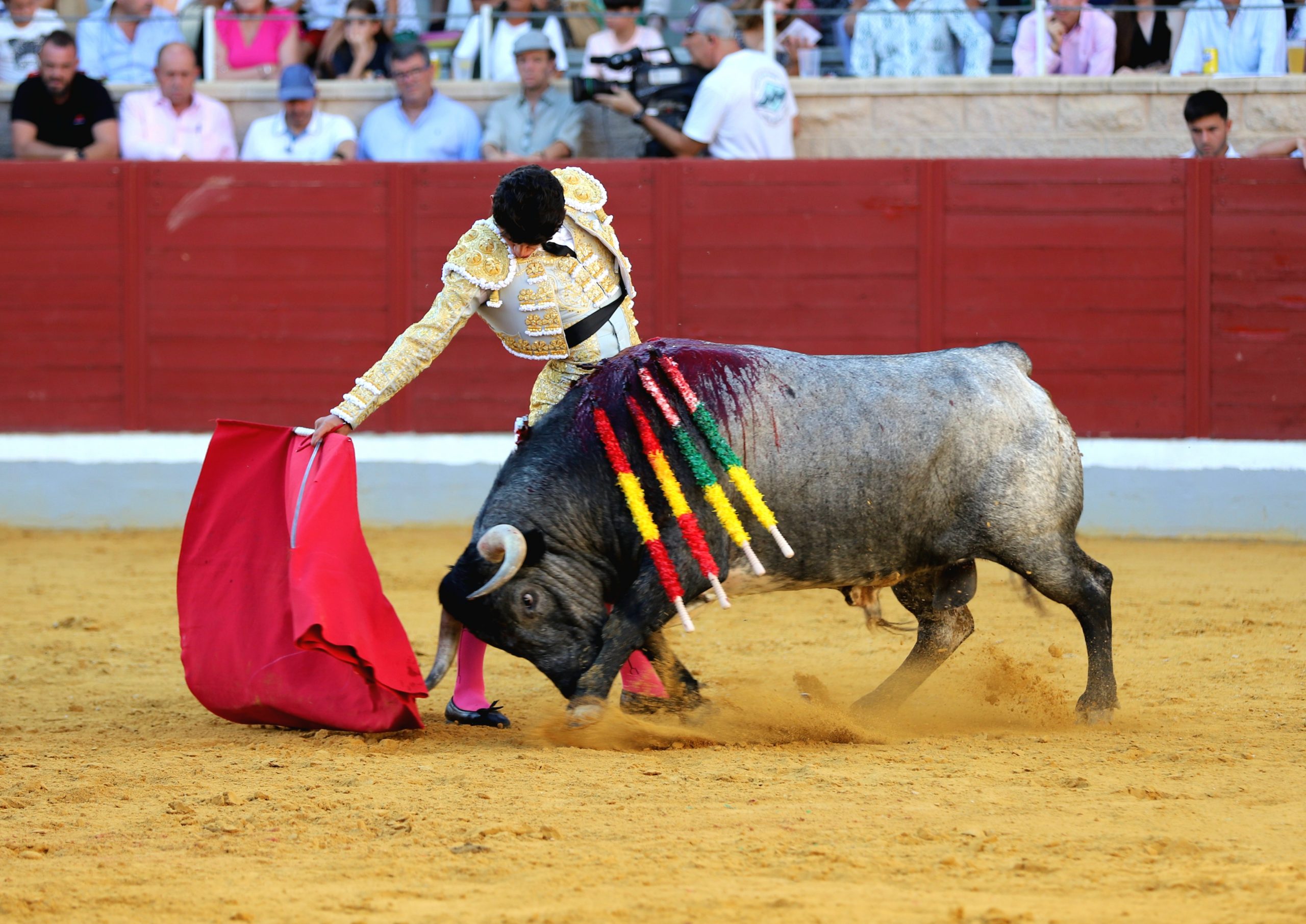 Se estiró y lució Mario Arruza con el segundo de la tarde, un novillo protestado desde los tendidos. Arruza inició la faena de muleta junto a las tablas ante un novillo que pasaba de lado pero al que fue atando en corto, ganándole terreno. Le dio tiempo y sitio para poder continuar sobre el pitón derecho, con un toque firme y delantero. Aprovechó la inercia para envolvérselo, aunque sin acople. Acortó las distancias y tiró del animal, dejándosela puesta, encontrando continuidad y cierta transmisión. Al natural encontró mayor longitud en la embestida, pasándolo en largo, aprovechando la amplitud de los vuelos para dejárselos en el hocico y llevárselo a la cadera. Culminó al natural, pero sin que la faena terminara de calar en unos tendidos algo ásperos.